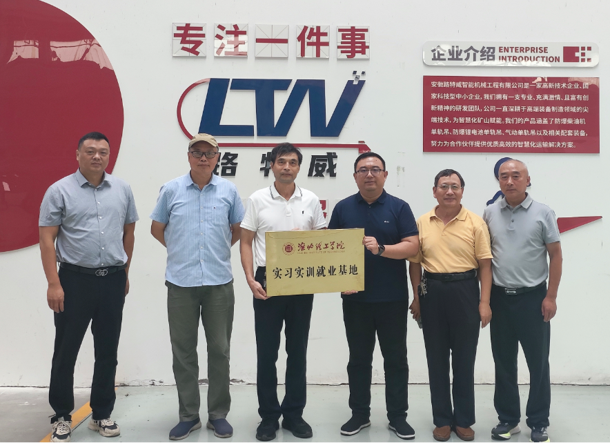2025年9月17日,淮北理工学院机电与建筑工程学院张安宁、王广健一行赴安徽路特威智能机械工程有限公司开展了访企拓岗、产学研交流,受到了公司况波总经理的热情接待。机电与建筑工程学院与安徽路特威智能机械工程有限公司共同签署了校企合作共建实习实训就业基地的协议,进行了基地的挂牌仪式。