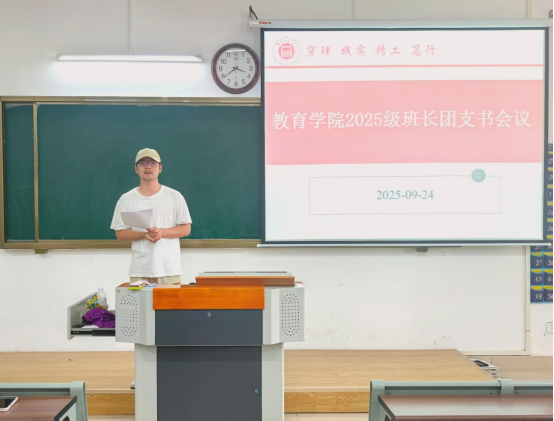 为加强新生班级组织建设,提升学生干部的综合能力与责任意识,确保学院各项工作有序推进,9月24日下午,教育学院于1号教学楼114教室组织召开2025级学生班长、团支书会议。本次会议由教育学院团总支书记许海涛主持,教育学院分管副书记孟向红、全体2025级班长及团支书参加。