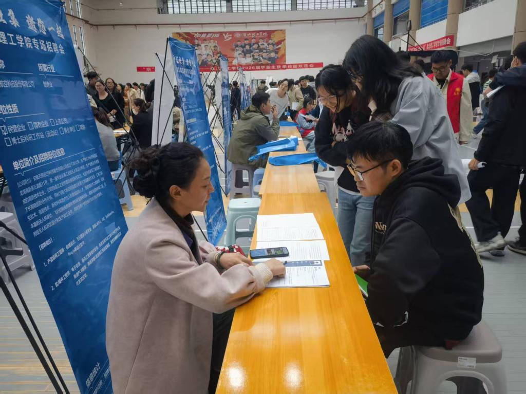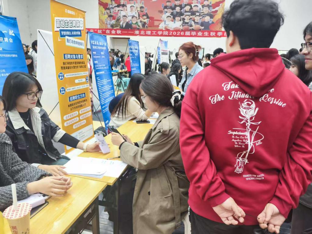 为全面落实高校毕业生就业创业工作决策部署,抢抓秋季校园招聘关键期,助力2026届毕业生实现高质量就业,淮北理工学院2026届毕业生秋季大型校园招聘会如期举行。电子与信息工程学院高度重视此次招聘盛会,组织六百余名毕业生参会求职,李影芝、李想、刘俊俊、孙浩等毕业生辅导员全程带队,为学子提供全方位求职指导与服务。