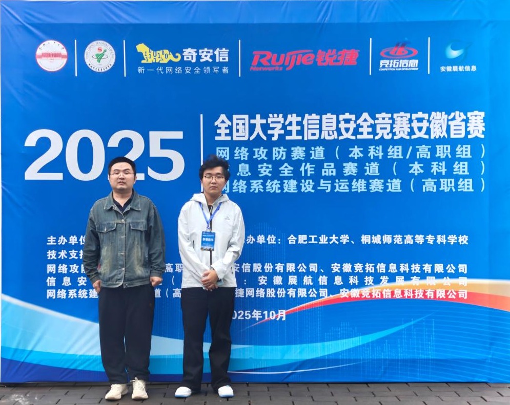 2025年10月18日,由桐城师范高等专科学校承办的2025年全国大学生信息安全竞赛安徽省赛(信息安全作品赛)决赛圆满落幕。淮北理工学院电子与信息工程学院选派的学生团队表现优异,由殷志伟、杜良轩、姜婷婷三位同学组成的参赛队凭借其创新的信息安全作品,最终荣获省级二等奖,展现了我院在网络安全领域人才培养的扎实成效。