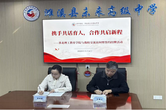 座谈交流结束后,双方举行了简洁而隆重的签约与授牌仪式。王家云院长与濉溪县未来高中龙永娟校长共同签署了教学实习基地协议,孟向红副院长则签署了实习实训就业基地协议,并现场完成挂牌。