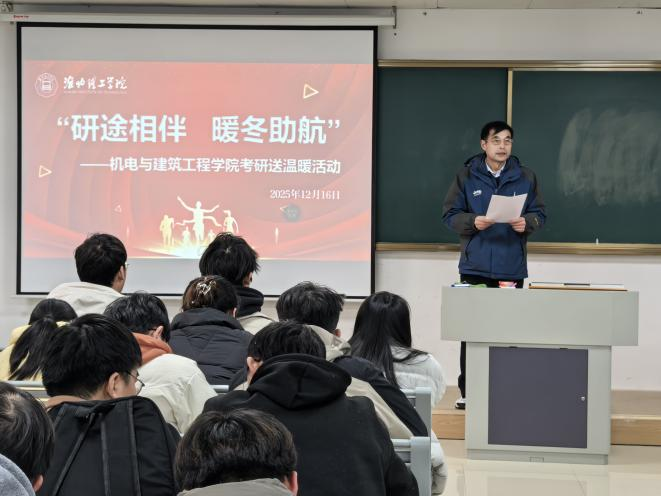 2026年全国硕士研究生招生考试初试将于12月20日正式开始,为给学院考研学子在冲刺阶段加油打气、缓解压力,12月16日下午,机电与建筑工程学院于一教320教室成功举办“研途相伴·暖冬助航”考研送温暖活动,为全体考研学生送上定制文具礼包与学院真挚祝福,学院党总支书记、院长张安宁、书记助理邓金鑫及毕业班辅导员老师共同参加,活动由张鹏老师主持。