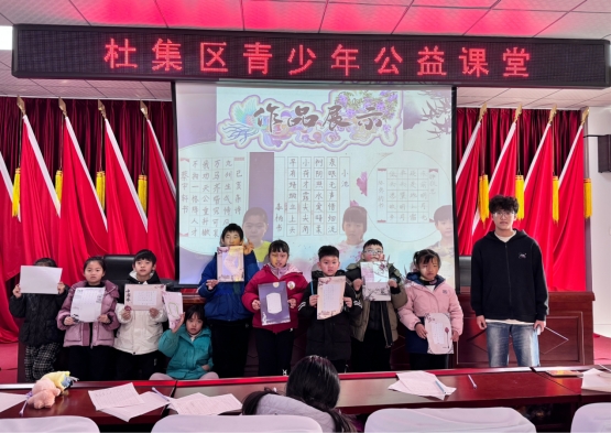 本次支教活动分硬笔书法和趣味手工两部分。硬笔书法活动中志愿者们以汉字的横折、竖钩两大基础笔画为基础,从起笔轻重、行笔走势到收笔顿挫,进行细致讲解与手把手示范。孩子们在掌握书写要领后,志愿者们带领贺紫梅临摹了古诗《白云泉》。稚嫩的笔尖在纸上流淌,一笔一划勾勒出对传统文化的热爱,也书写着活动里的专注与热忱。