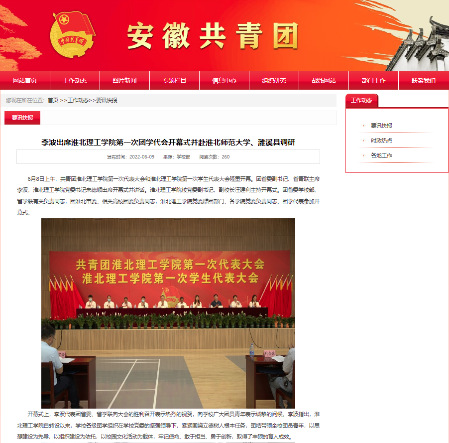 6月8日,共青团淮北理工学院第一次代表大会、淮北理工学院第一次学生代表大会圆满完成各项任务,胜利闭幕。安徽共青团网对此进行了报道。