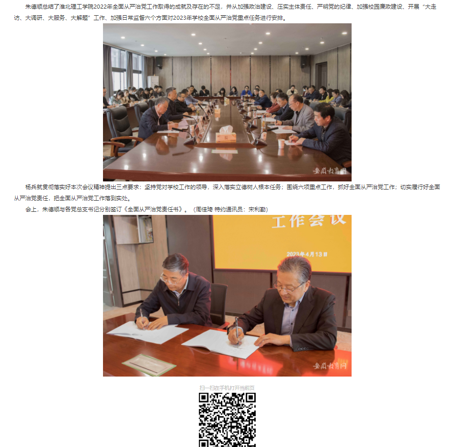 4月13日上午,学校召开2023年全面从严治党工作会议。对此安徽教育网进行了报道:
