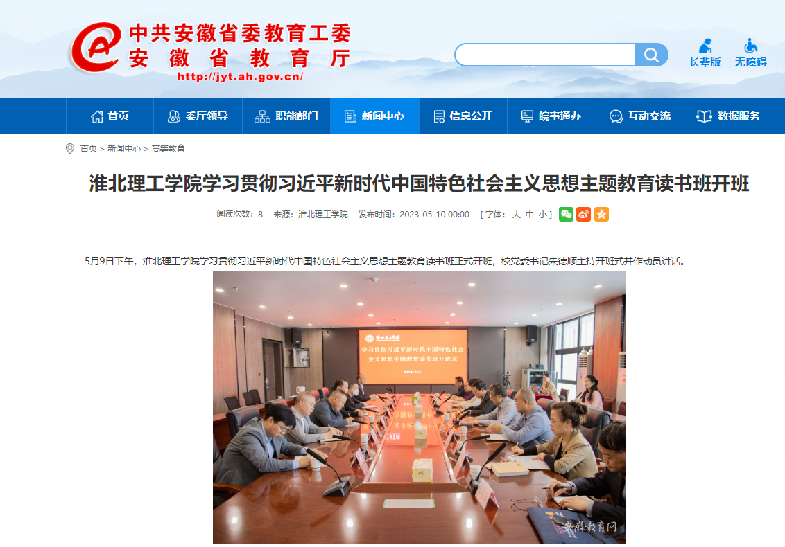 5月9日下午,淮北理工学院学习贯彻习近平新时代中国特色社会主义思想主题教育读书班正式开班,校党委书记朱德顺主持开班式并作动员讲话。对此,安徽教育网进行了报道: