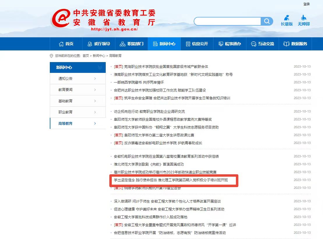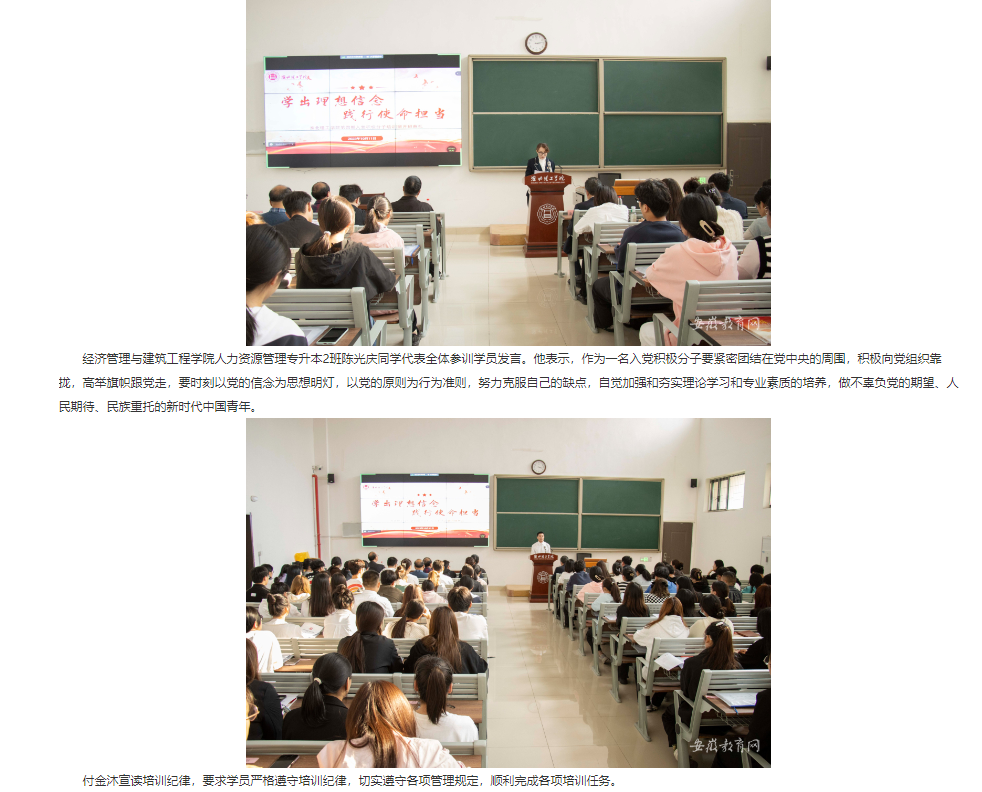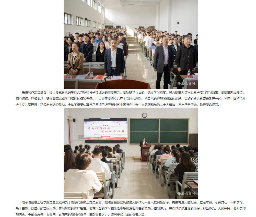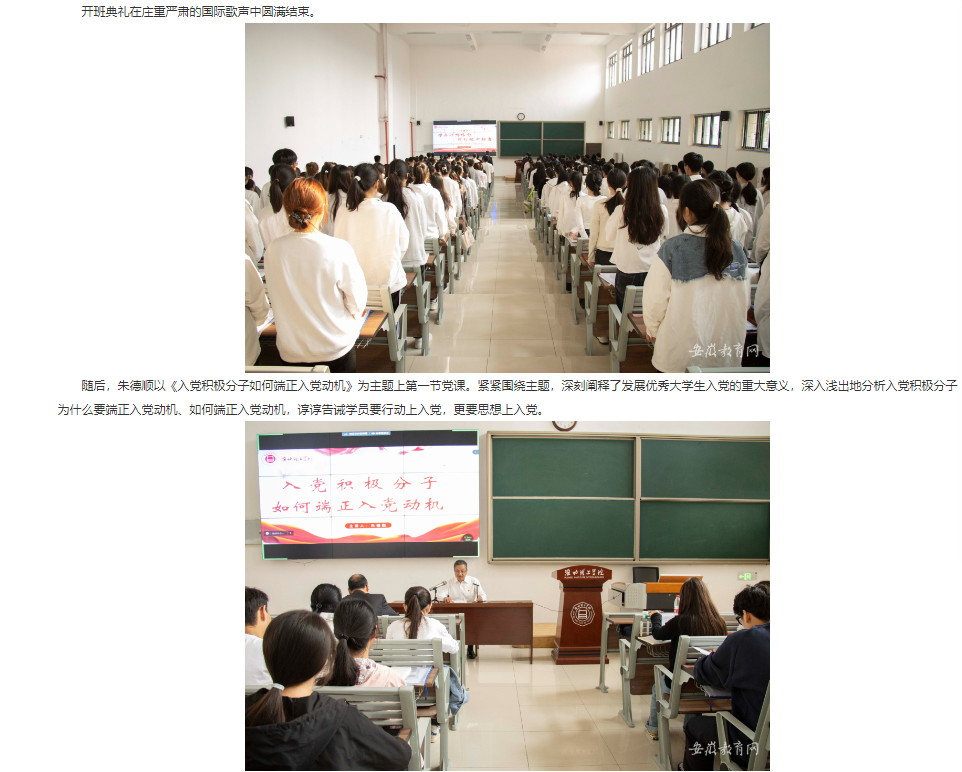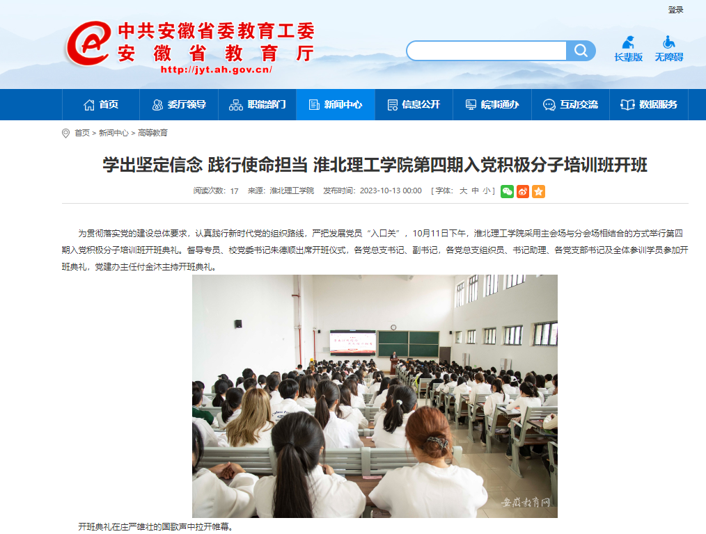 为贯彻落实党的建设总体要求,认真践行新时代党的组织路线,严把发展党员“入口关”,10月11日下午,淮北理工学院采用主会场与分会场相结合的方式举行第四期入党积极分子培训班开班典礼。对此,安徽教育网进行报道: