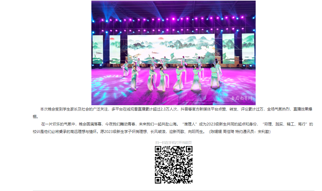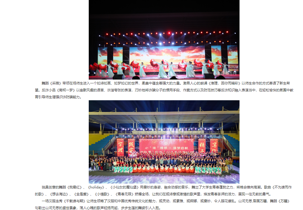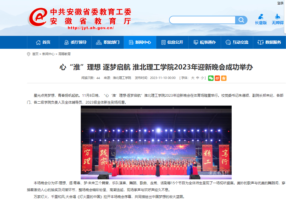 星光点亮梦想,青春扬帆起航。11月8日晚,“心‘淮’理想·逐梦启航”淮北理工学院2023年迎新晚会在体育场隆重举行。对此,安徽教育网进行了报道: