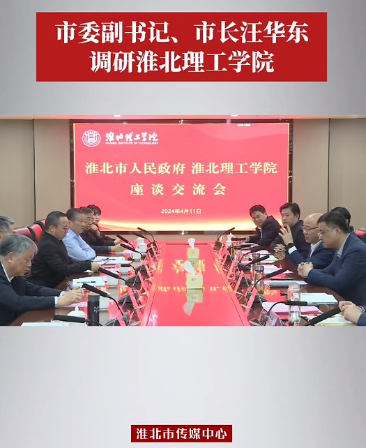 4月11日下午,市委副书记、市长汪华东前往淮北理工学院走访调研,并与学校领导班子成员、中层干部代表、师生代表等座谈交流。对此,淮北市传媒中心进行了报道: