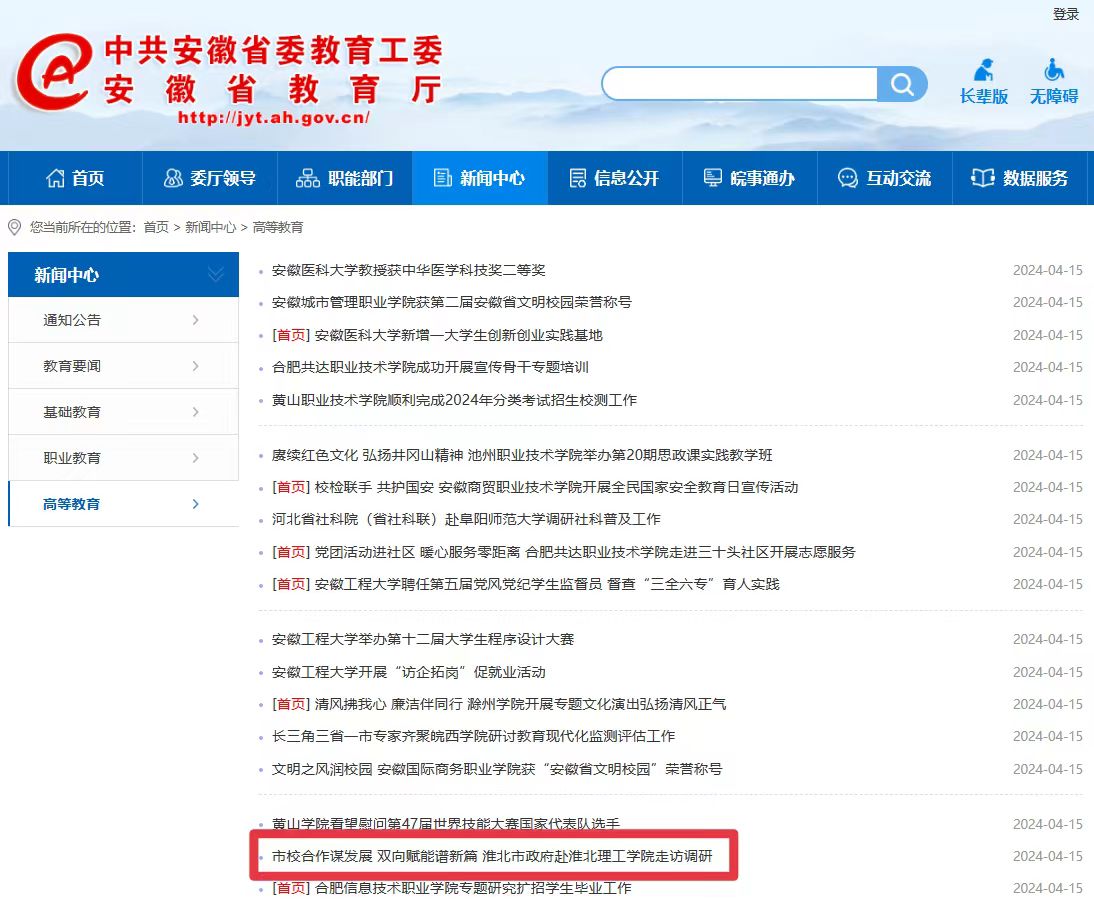安徽省政府 安徽省教育厅 淮北市政府 淮北师范大学 淮北市教育局 中国教育和科研计算机网 国家高等教育智慧教育平台
