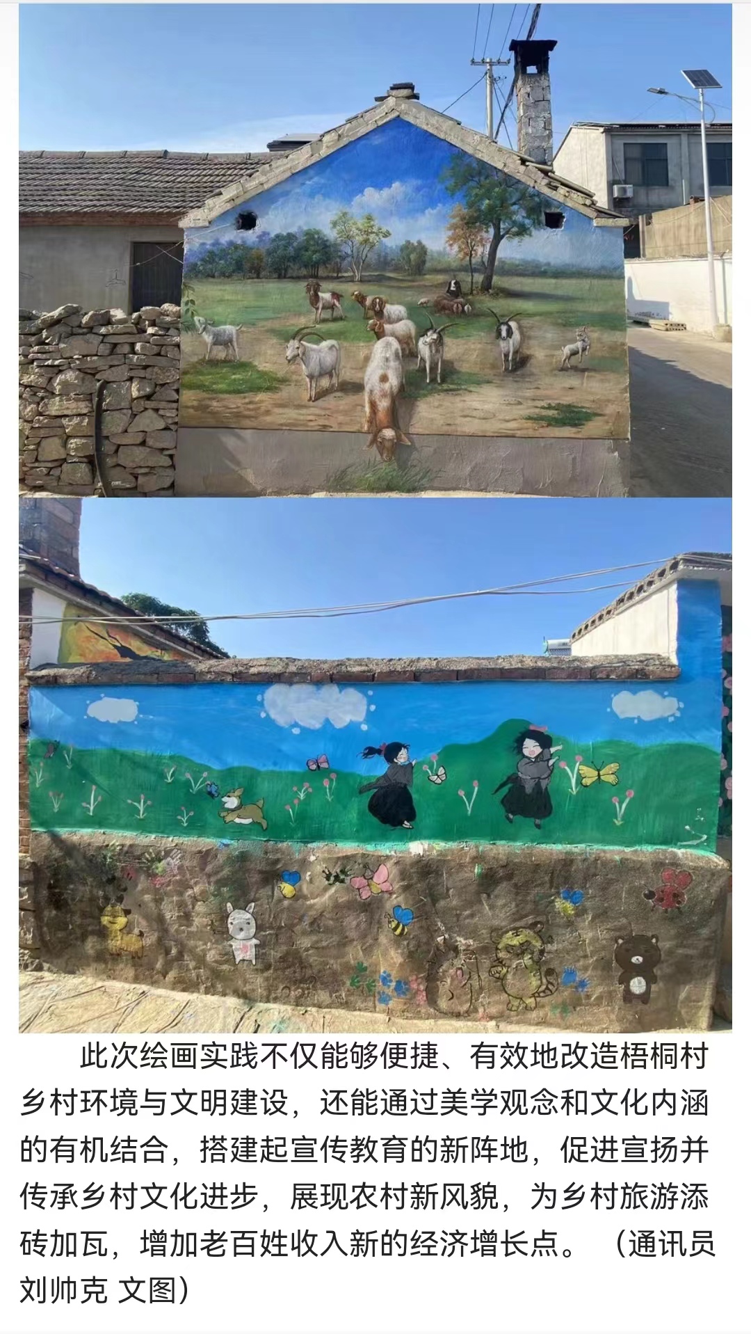 近日,“丰收麦场”、“欢乐田野”、“牧羊天地”等一幅幅构思巧妙、惟妙惟肖的墙绘作品亮相街头巷尾,又为安徽省美丽乡村示范村——淮北市杜集区石台镇梧桐村增添了一道靓丽风景线,成为村民、游人、网红喜欢的打卡景点。对此,中经视点进行了报道:
