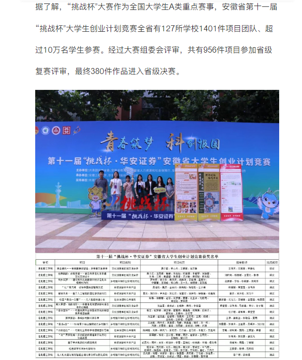 近日安徽省第十一届“挑战杯·华安证券”安徽省大学生创业计划竞赛决赛在芜湖市落下帷幕。经过决赛激烈角逐,淮北理工学院报送项目《锦香遗风——传锦囊赓续留香,承非遗文脉世传》《丝帛皖韵,点亮非遗——活态传承淮北市文创设计》《“绘乡筑梦”——建设现代化美丽新农村以淮北市梧桐村为例》等3项获银奖;《“化”繁为简·引领中国新型植棉方式》《智创未来——基于人工智能的冒险游戏新风向》《校园“一公里”——无人智能快递小车》……等12项获铜奖,获奖数量、质量均创学校历史新高。对此,文旅中国进行了报道: