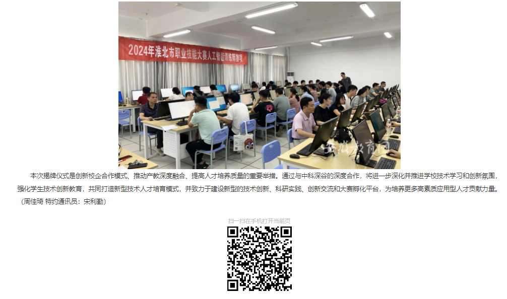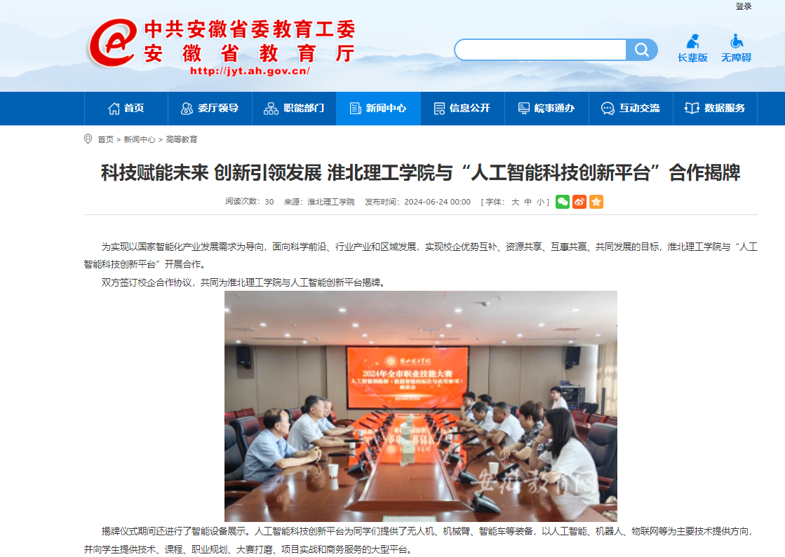 为实现以国家智能化产业发展需求为导向,面向科学前沿、行业产业和区域发展,实现校企优势互补、资源共享、互惠共赢、共同发展的目标,淮北理工学院与“人工智能科技创新平台”开展合作。对此,安徽教育网进行了报道: