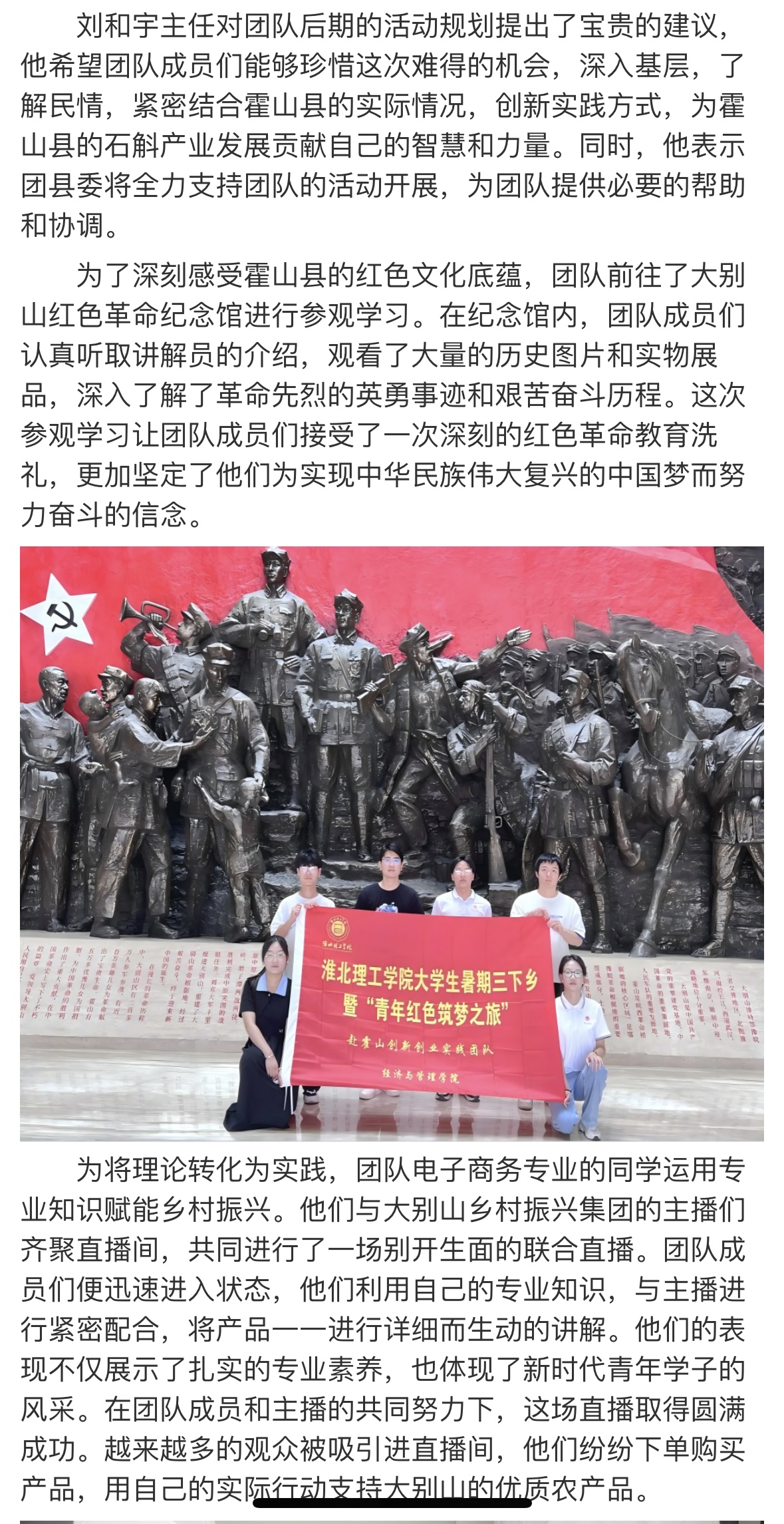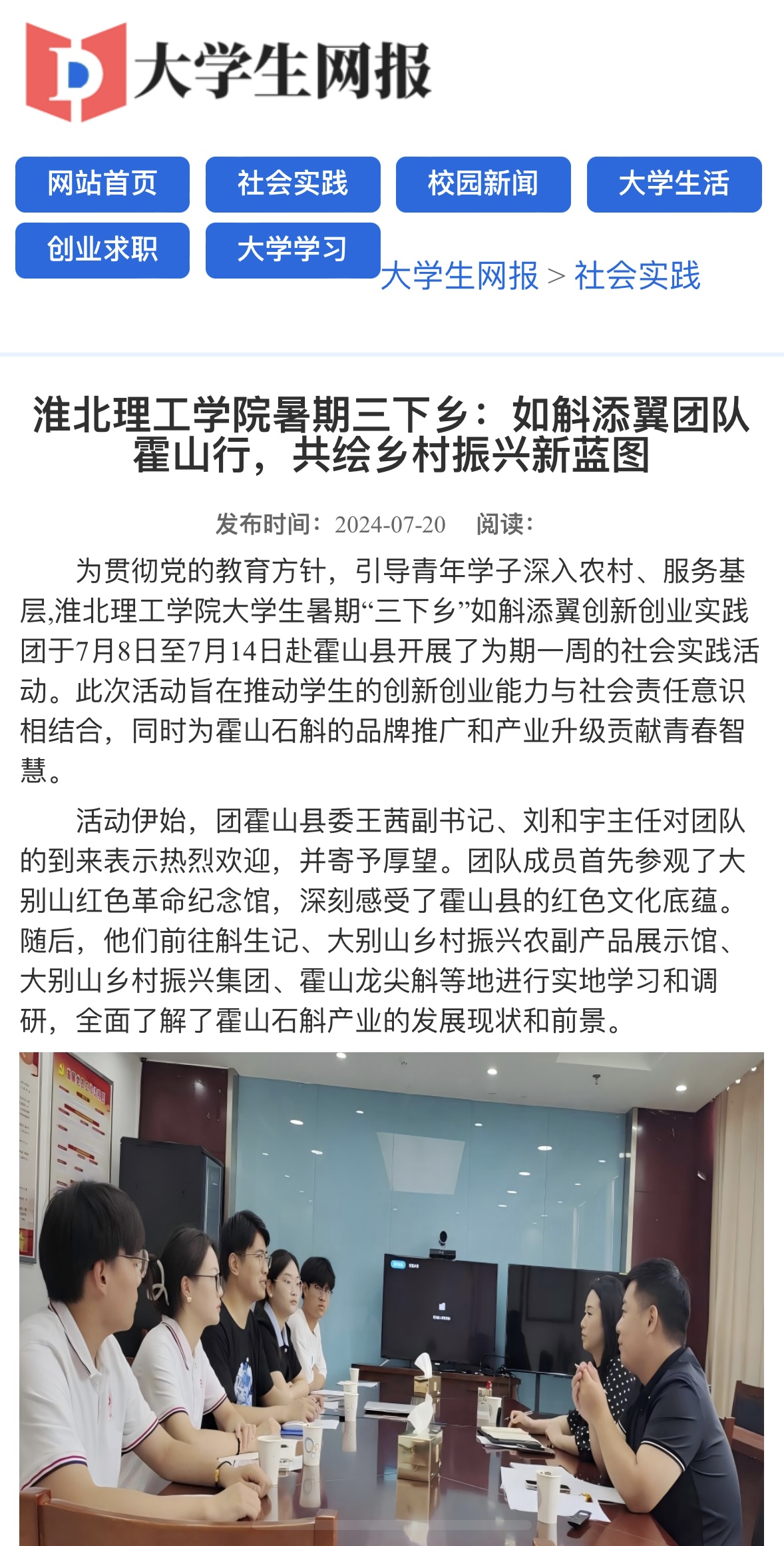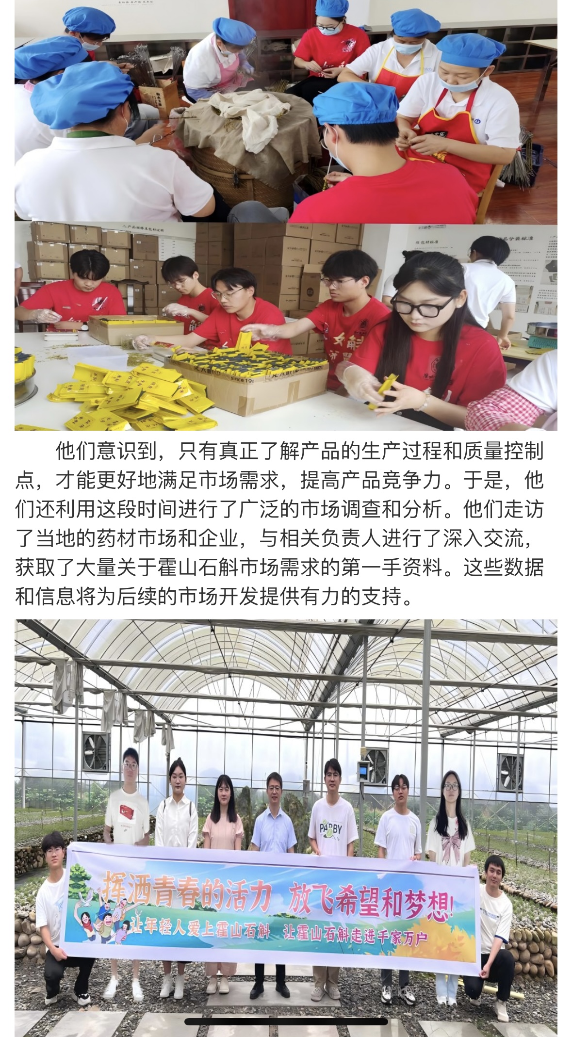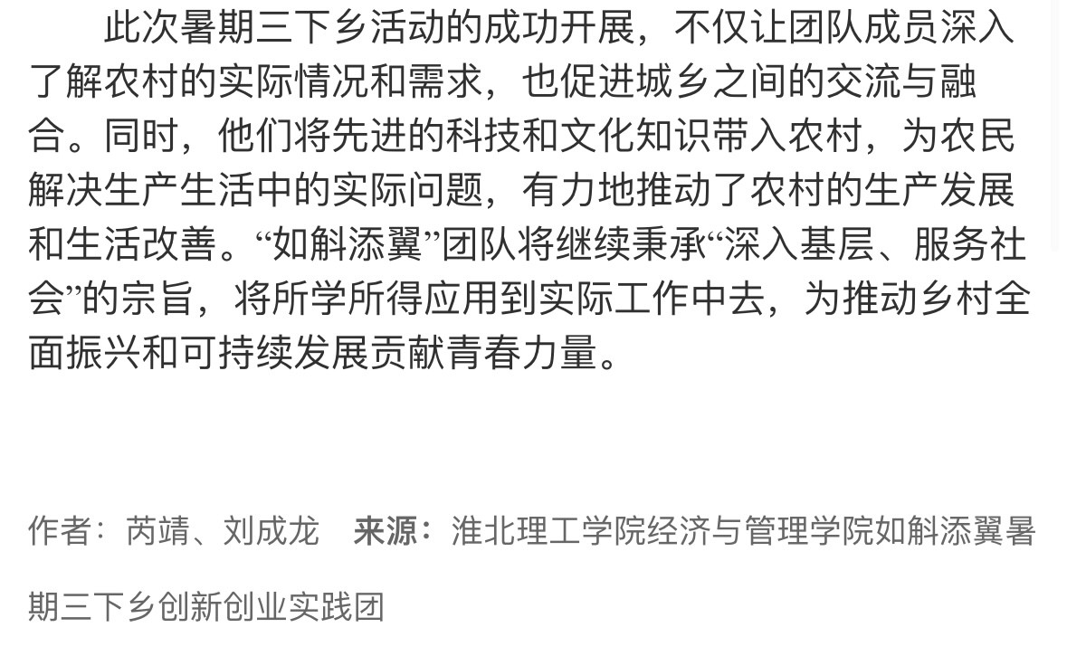 为贯彻党的教育方针,引导青年学子深入农村、服务基层,淮北理工学院大学生暑期“三下乡”如斛添翼创新创业实践团于7月8日至7月14日赴霍山县开展了为期一周的社会实践活动。此次活动旨在推动学生的创新创业能力与社会责任意识相结合,同时为霍山石斛的品牌推广和产业升级贡献青春智慧。对此,大学生网报进行了报道: