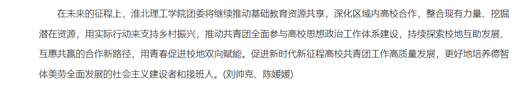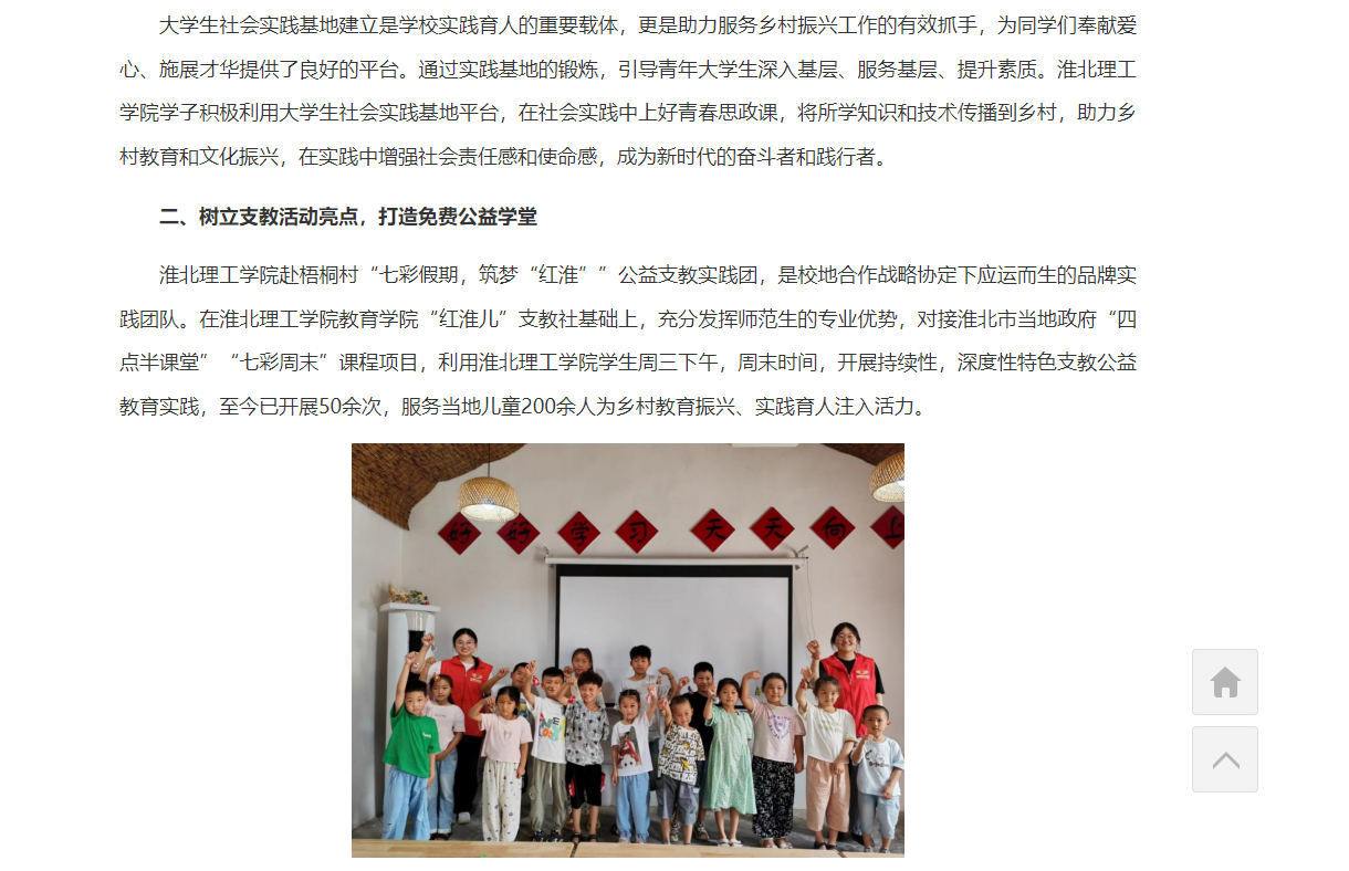 为突出实践特色,提升共青团实践育人科学化、专业化水平,推动第二课堂与第一课堂深度融合,引导学生走向社会、走进基层,广泛开展学术实践、主题实践、社区实践、体验实践和公益实践等思政实践活动,在社会生活中坚定理想信念,提升精神素养,弘扬奋斗精神。对此,安徽网新安日报进行了报道: