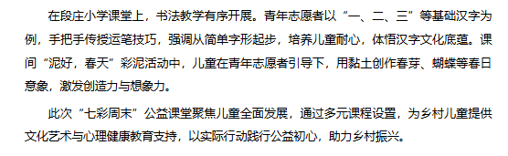 近日,团淮北市杜集区委联合淮北理工学院“红淮儿”支教社,在梧桐村、段庄小学开展“七彩周末”公益课堂活动。对此,安徽财经网进行了报道: