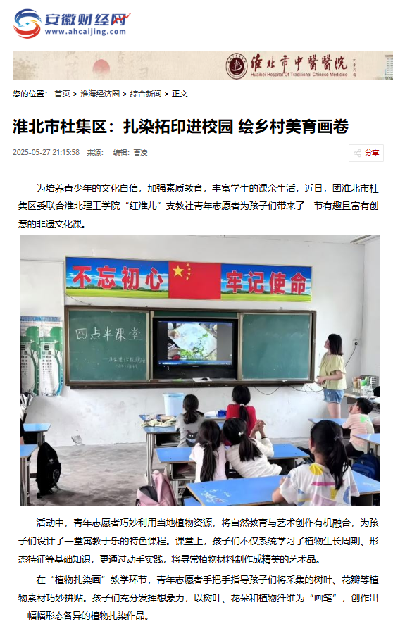 为培养青少年的文化自信,加强素质教育,丰富学生的课余生活,近日,团淮北市杜集区委联合淮北理工学院“红淮儿”支教社青年志愿者为孩子们带来了一节有趣且富有创意的非遗文化课。对此,安徽财经网进行了报道: