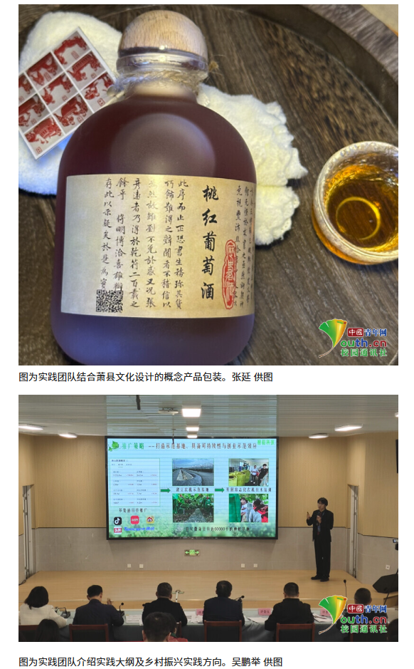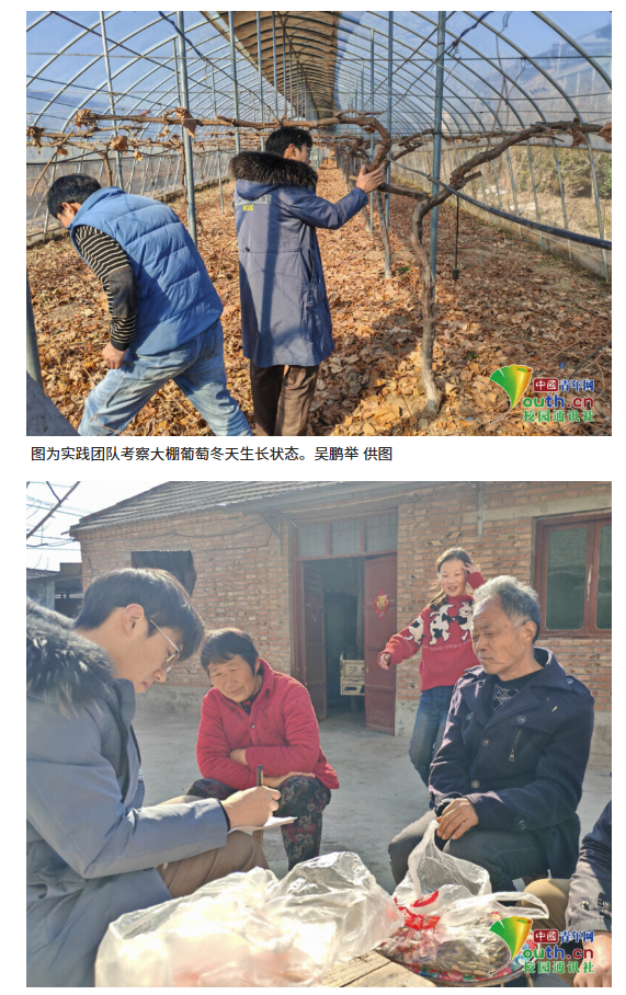 1月12日至1月24日,淮北理工学院“清渊振兴”寒假社会实践团队赴安徽省宿州市萧县,开展全国葡萄生产销售与乡村发展调研。安徽省宿州市萧县作为全国四大葡萄生产基地之一,种植规模大但面临“优质不优价”、销路单一等问题。实践团队开展为期12天的实践调研,深入农户家中,是团队获取第一手信息的关键。在种植户家中,队员们与农户围坐一堂,听他们讲述种植故事、销售难题。通过实地调研、问卷采访、入户座谈摸清症结,以“加工增值、品牌拓销”为思路,研发“清风”葡萄酒。破解当地产业难题,为乡村振兴注入青春动能,彰显了当代大学生扎根基层、服务家乡的责任担当。对此,中青校园网进行了报道: