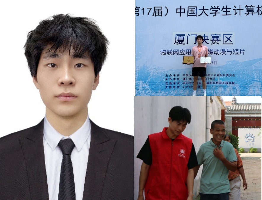 曾获国家励志奖学金、校特等优秀学生奖学金各两次以及校级“三好学生”、“优秀团员”“三下乡优秀个人”等荣誉称号。征战多项学科竞赛,成果突出,曾获全国大学生算法设计与编程挑战赛金奖、第十七届中国大学生计算机设计大赛全国三等奖、2024年安徽省高校物联网应用创新大赛一等奖、2023年安徽省大学生服务外包创新创业大赛三等奖等9项省部级及以上奖项。以学生第一作者发表学术论文1篇,获国家实用新型专利授权1项,主持安徽省大学生创新创业训练计划项目1项。